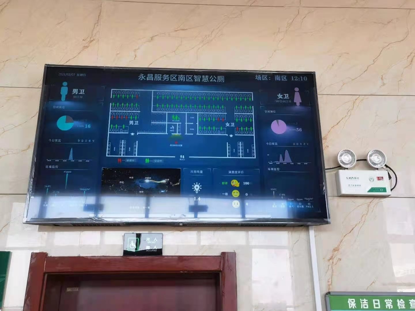 光明源智能科技的智慧公厕方案已在全国多个服务区成功落地,取得了显著成效。以某长三角地区的服务区为例,该服务区地处交通要道,节假日客流量极大。过去,旅客常常要在厕所外排长队,或者挨个敲门寻找空闲厕位。引入光明源智能科技智慧厕所系统后,情况大为改观。每个厕位安装的智能传感器能准确检测是否有人使用,数据实时传输到入口处的引导大屏上,旅客只需抬头看看屏幕,就能知道哪里有空位,非常方便。改造后,旅客平均找厕时间从5分钟缩短到1分钟以内,大大提升了出行效率。